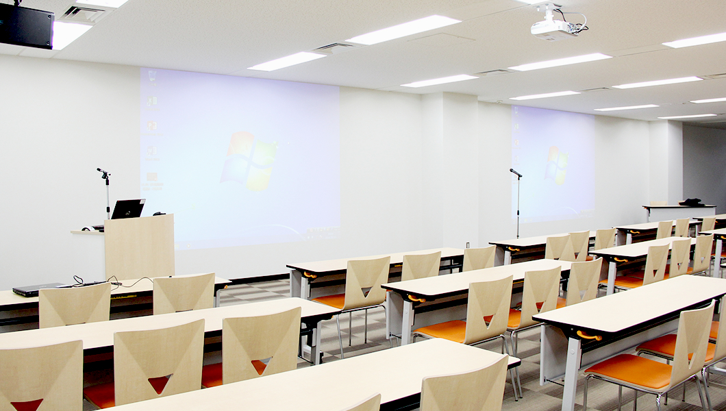 また、プロジェクターを天井吊り下げにすることでスペースの有効活用を図っております。