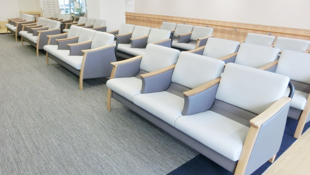 「ちょっとした仕切」なんですがご利用される患者様を思い浮かべた結果、このようなロビーチェアを選定させていただくことになりました。