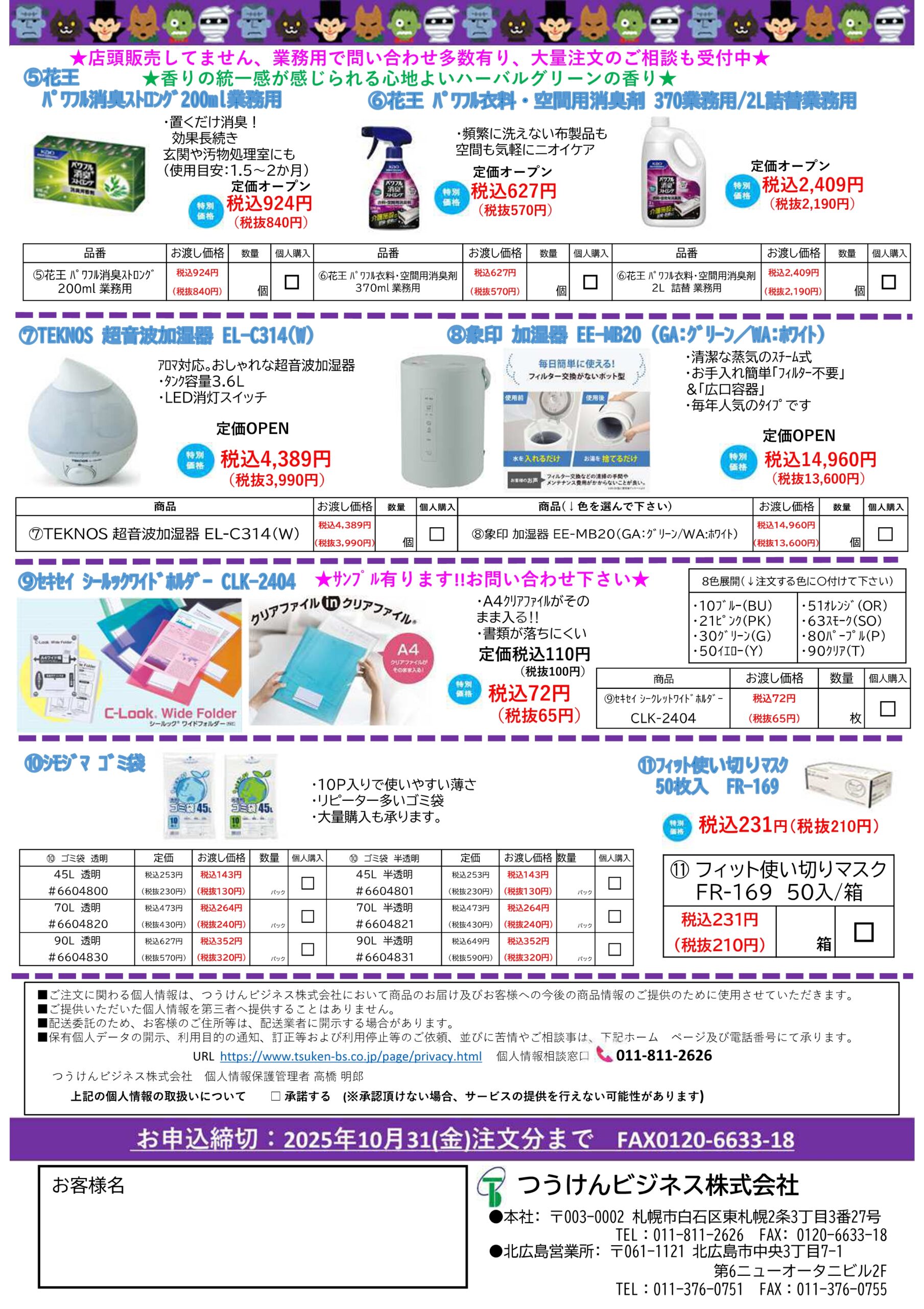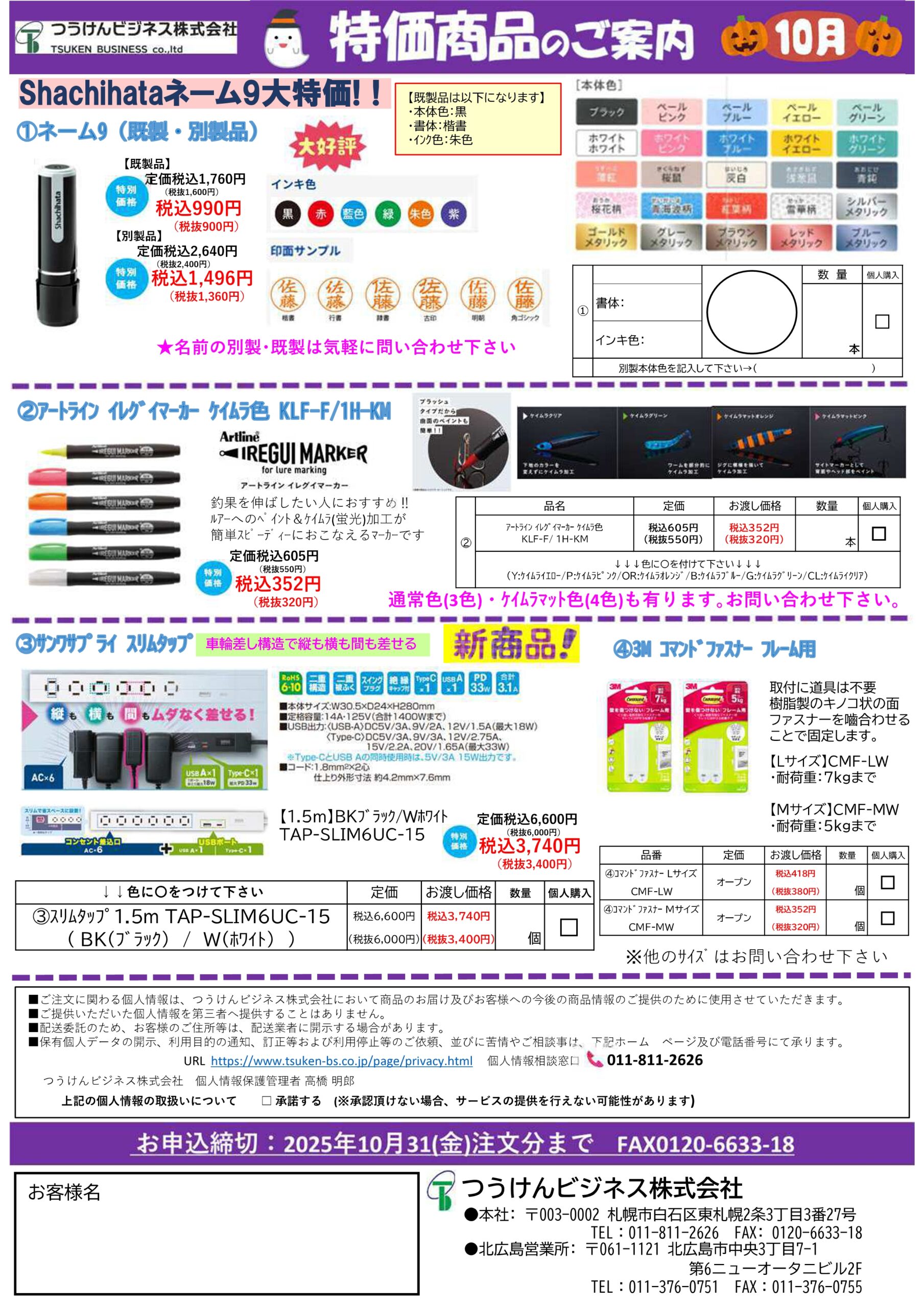 【特価商品のご案内10月】を掲載しました